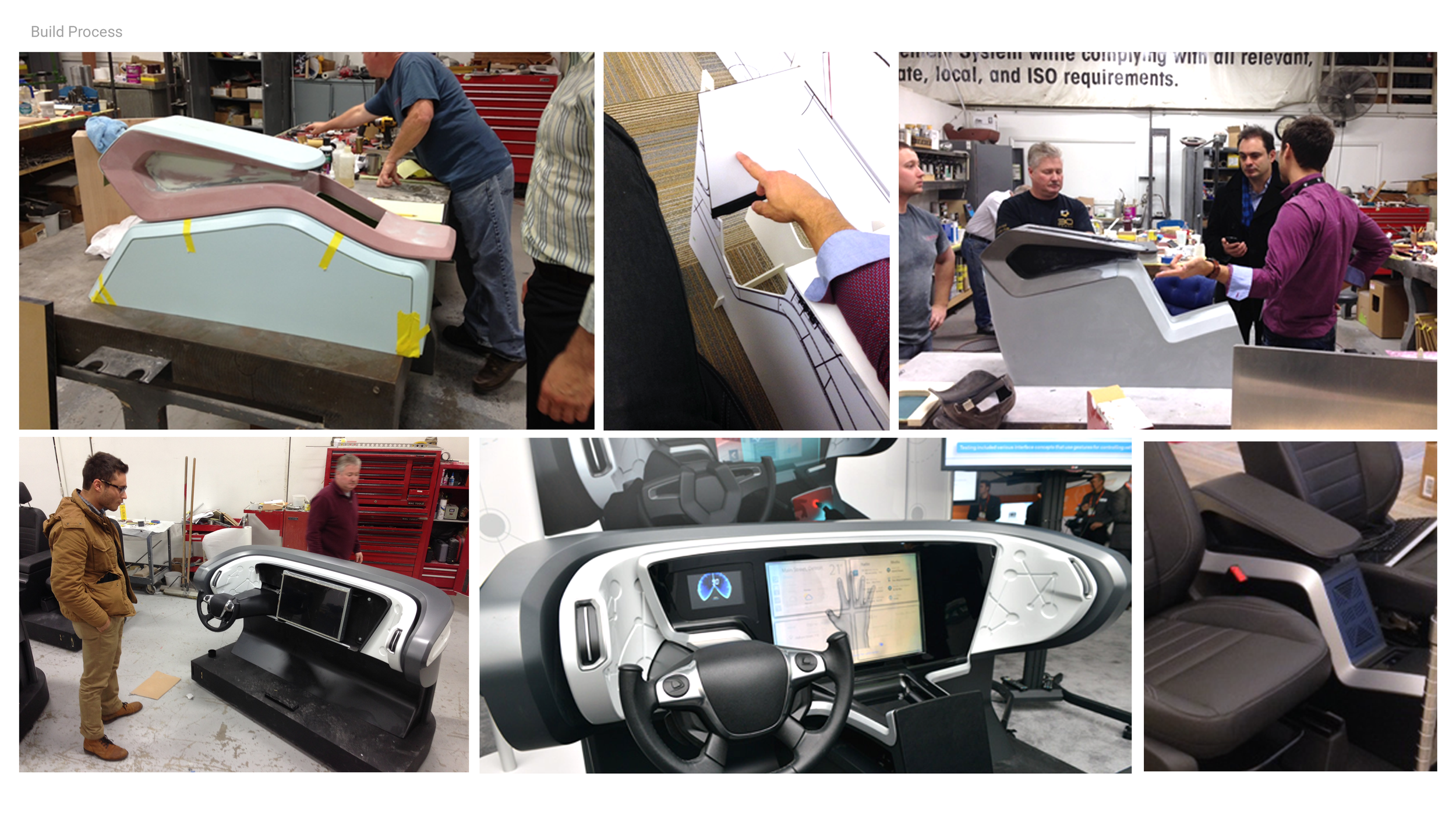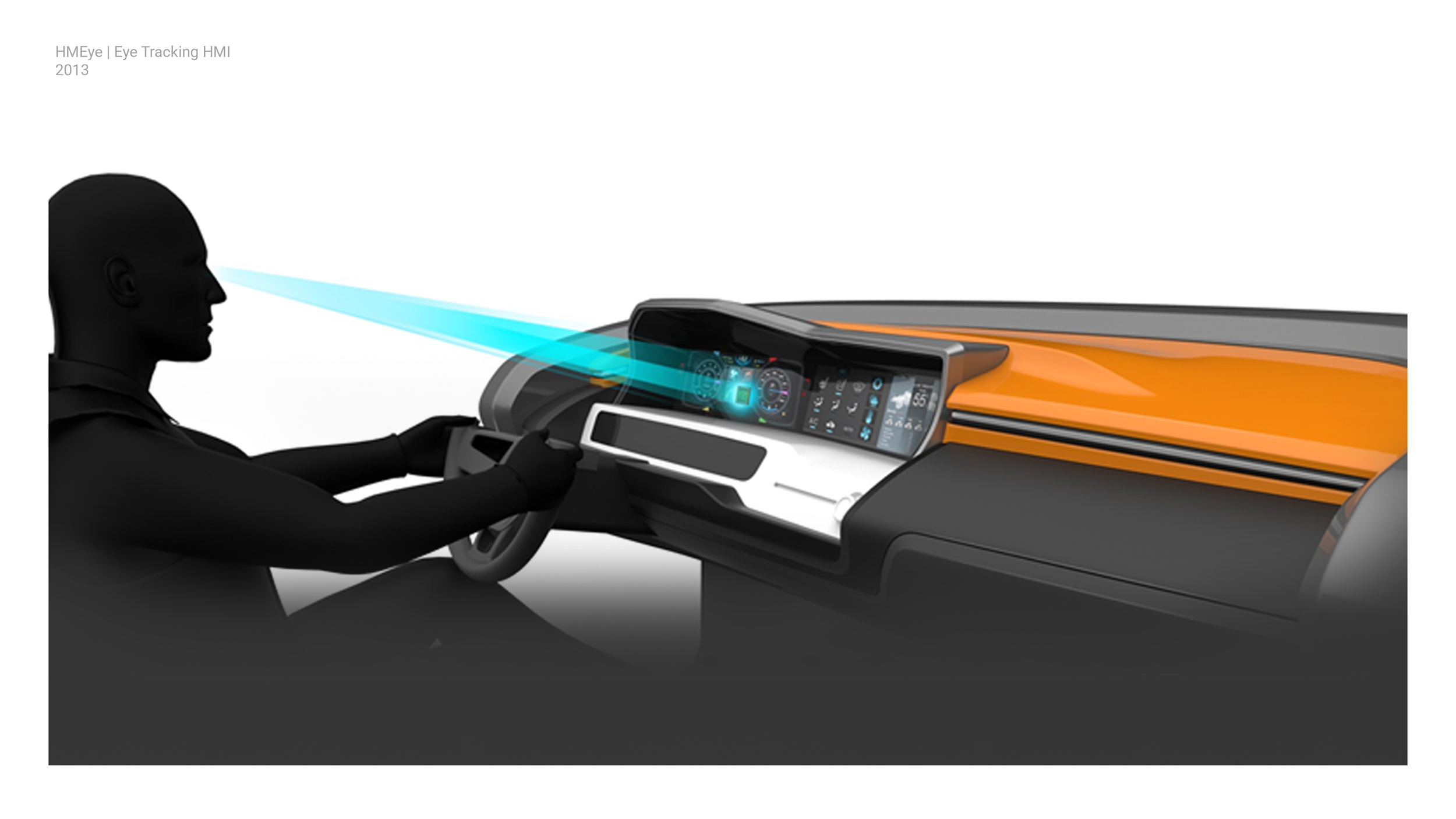 HMeye was an exploration to understand the value eye tracking technologies could bring as an input modality to the cockpit. Most of the challenge around HMeye was creating a cockpit feel and packaging large IR sensors that had line of site to the driver.