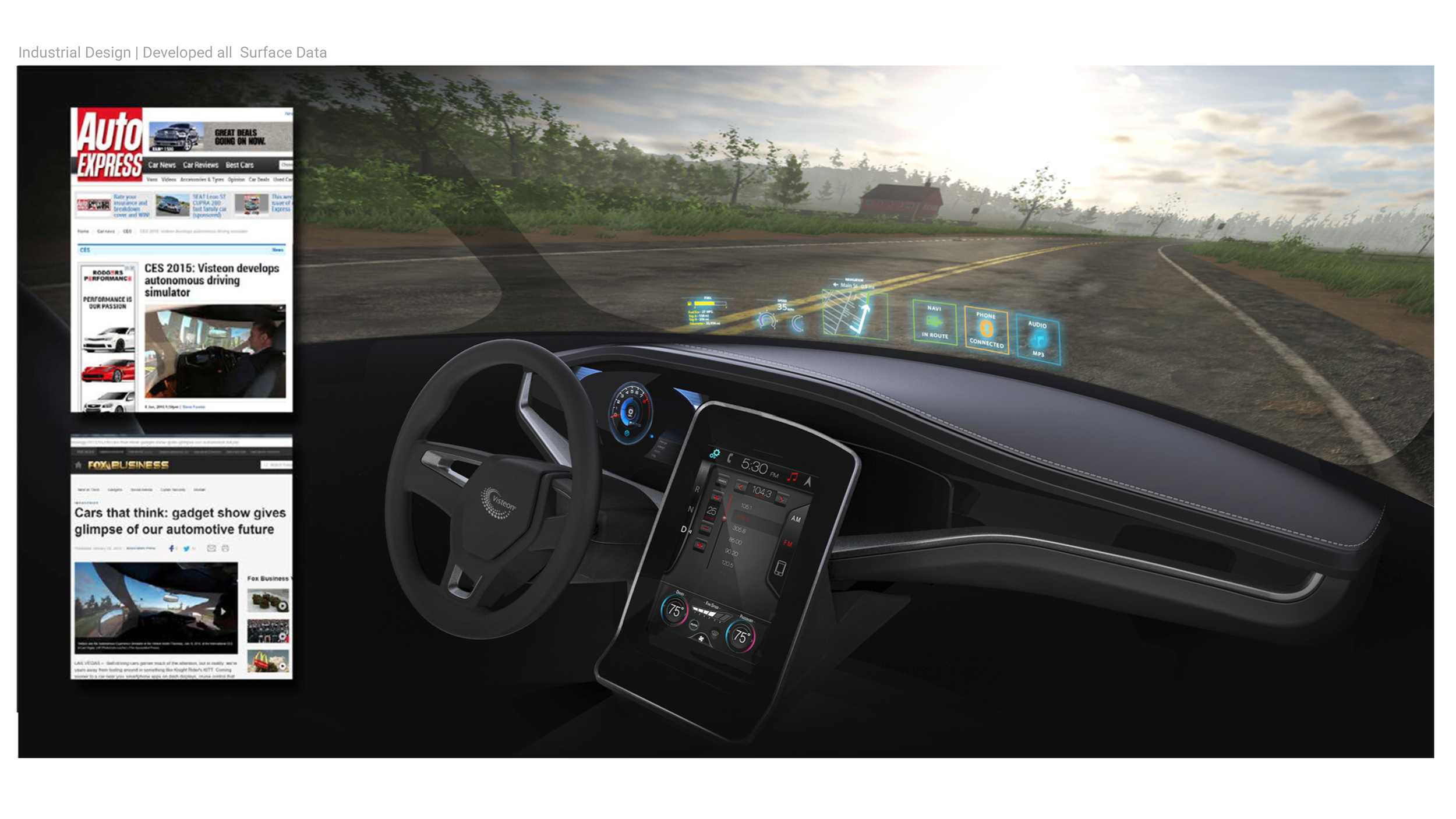 At Visteon, I worked within the UX innovation team to bring new ideas to life during a pivotal shift in automotive interiors—from being defined by form to being shaped by user experience. Many of the prototypes I created were both design and UX explorations, serving as research-driven studies that helped answer key questions about how emerging technologies could enable new cockpit experiences. These concepts were shown at clinics and events to spark dialogue and inspire what the future of in-car experience could be.